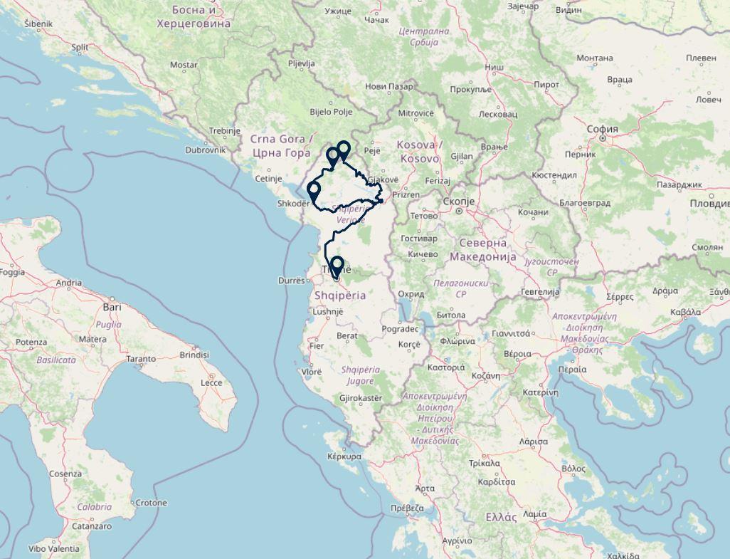 Route: Valbona - Tirana 267km