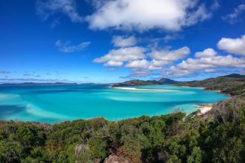 De 74 eilanden van de Whitsundays liggen verspreid over de helderblauwe oceaan, voor de kust van Airlie Beach. De meeste eilanden zijn onbewoonde natuurgebieden met uitzonderlijk witte stranden. U kunt altijd wel een verlaten baai vinden. Het gebied bij uitstek om met een zeilboot te verkennen. Op een aantal eilanden, zoals Hamilton Island, kunt u overnachten in een mooi hotel.