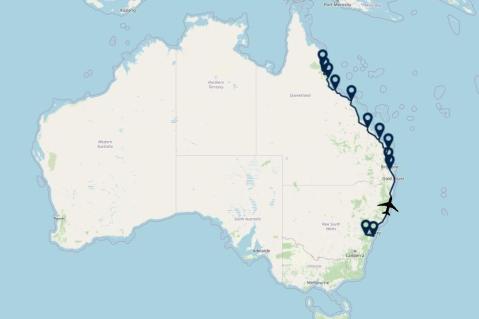 Ten noorden van Sydney strekt de kust zich uit tot aan Queensland. Een bezoek waard is de beschutte baai van Port Stephens, een gebied met oude vulkaantoppen en vrijwel verlaten stranden. In Nelson Bay kunt u dolfijnen zien spelen en een korte oversteek brengt u op het ongerepte Broughton Island. Dit eilanden heeft een fascinerende flora en fauna en is een paradijs voor natuurliefhebbers. Het is ook een uitstekende plek om walvissen te spotten tijdens de migratie (mei - november). Het gemoedelijke Byron Bay is een typisch Australische kustplaats met stranden vol surfers en winkelstraten vol galleries en kleurrijke markten.