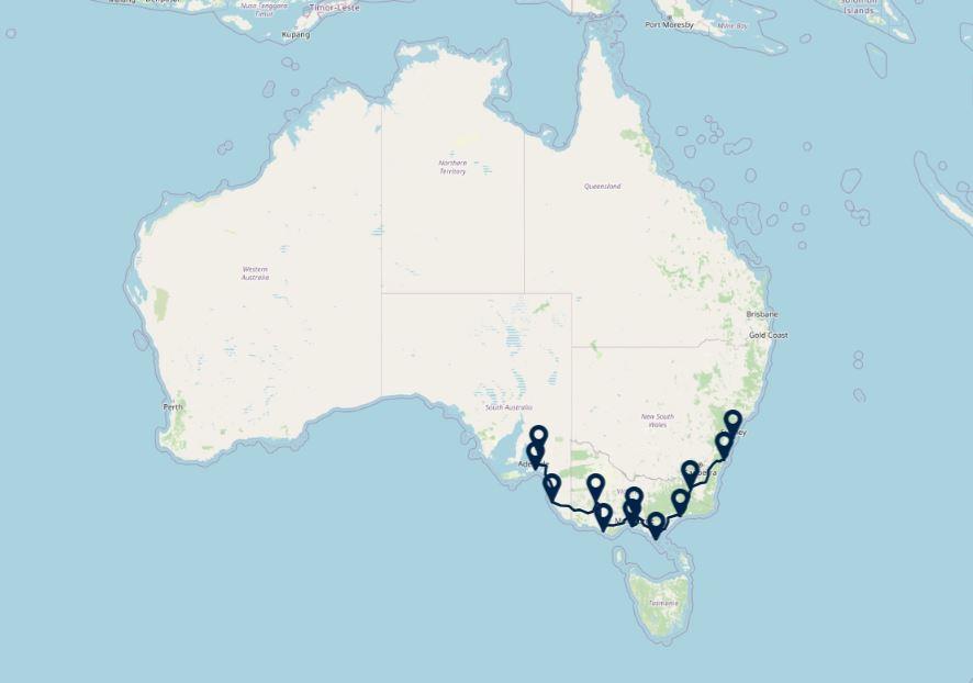 Een mooie reis langs de Zuidoostkust van Australië. U bezoekt de leuke steden Sydney en Melbourne, rijdt langs de beroemde Great Ocean Road en bezoekt minder bekende natuurgebieden, zoals de Snowy Mountains en Coorong National Park. Tijdens de reis verblijft u veelal in comfortabele cabins, safaritenten of andere unieke accommodaties.