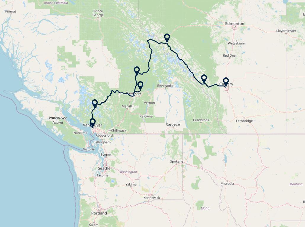 Zie de hoogtepunten van West-Canada tijdens deze 15-daagse reis. Uw reis begint in de gezellige stad Vancouver. Vervolgens rijdt u de bergen in naar de wintersportplaatsjes Whistler en Sun Peaks. Via het Wells Gray Provincial Park rijdt u naar de Rocky Mountains, waar u ruim de tijd heeft om de nationale parken Jasper en Banff te bezoeken. Een mooie kennismaking met West-Canada.