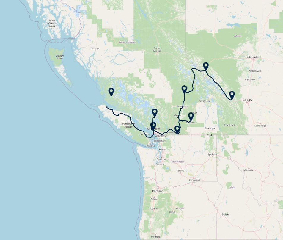 Via de vallei van de Fraser River bereikt u de westkust. U passeert Vancouver en volgt een van de mooiste routes ter wereld, de Sea-to-Sky Highway. De weg begint op zeeniveau en klimt langzaam omhoog met prachtige uitzichten over de Howe Sound. De route voert u door het Garibaldi Provincial Park naar Whistler.