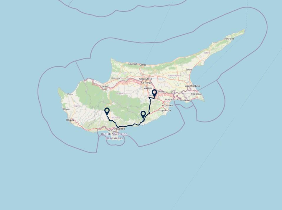 Route: Luchthaven Larnaca (ophalen huurauto) - Lympia, 25 km