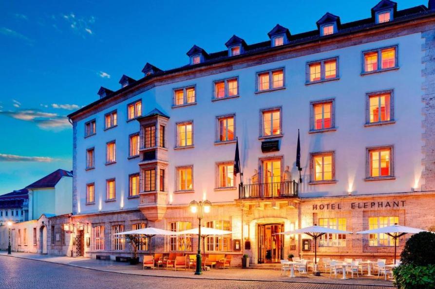 Hotel Elephant Weimar is een iconisch en luxe boutiquehotel, direct gelegen aan het historische marktplein van Weimar. Het hotel kent een rijke geschiedenis die teruggaat tot de 17e eeuw en combineert die klassieke grandeur met modern comfort en stijlvol design, waarin invloeden van onder andere Bauhaus en Art Deco duidelijk terug te zien zijn. Tegenwoordig is het niet alleen een verblijfplaats, maar ook een cultureel ontmoetingspunt met een gerenommeerd restaurant, sfeervolle bar en een lange traditie als gastvrij adres voor kunstenaars, schrijvers en reizigers.