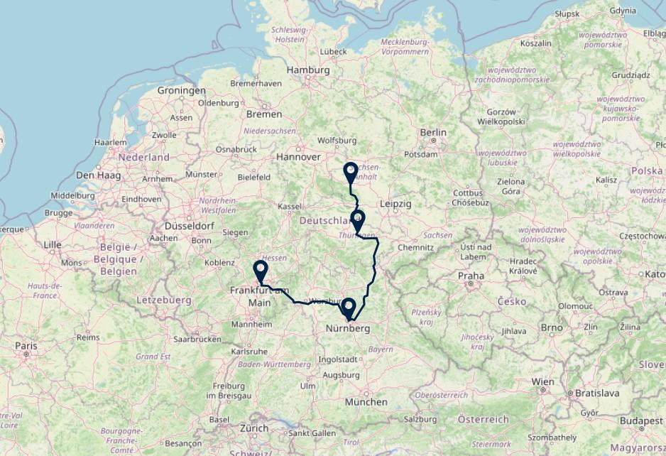 Route: Nürnberg - Weimar, 244 km
