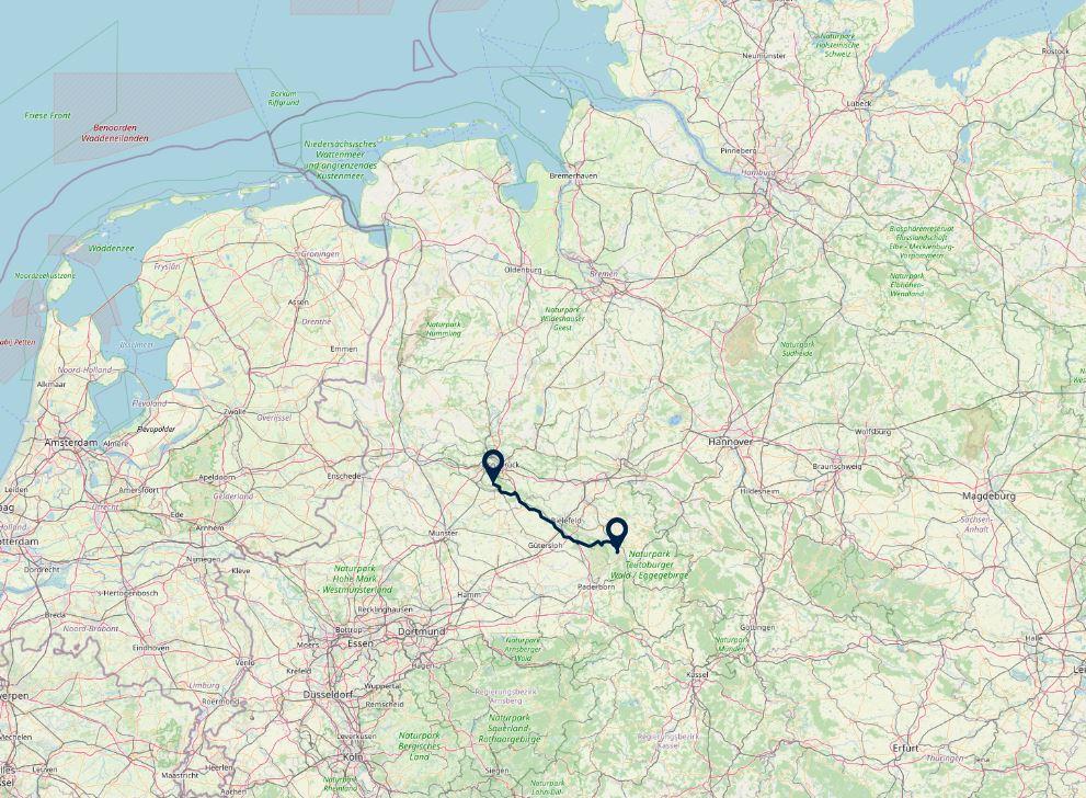 Route: Aankomst in Duitsland - Hagen am Teutoburger Wald, 220 km (vanaf Utrecht)