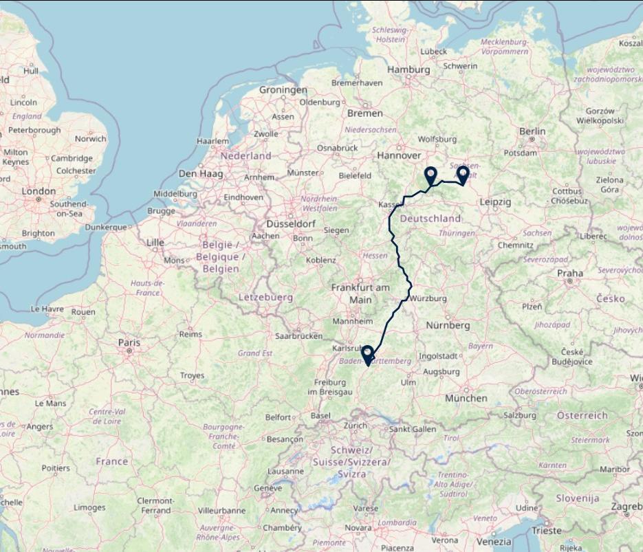 Route: Aankomst in Duitsland - Aschersleben, 530 km (vanaf Utrecht)