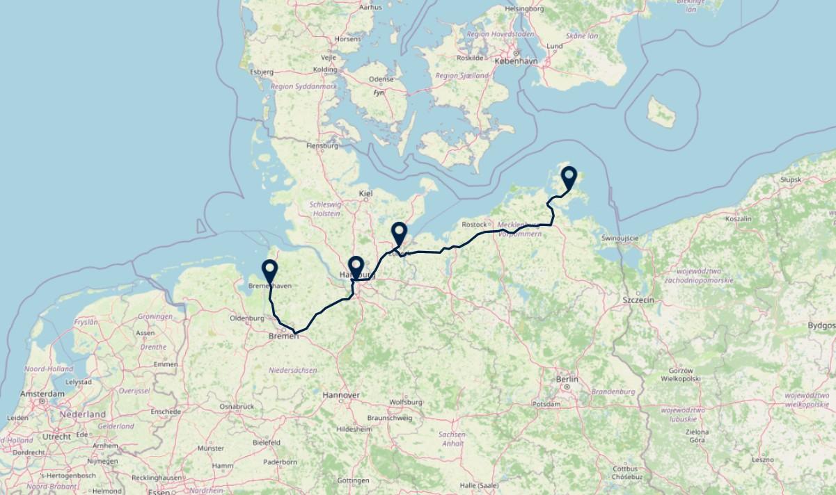 Route: Bremerhaven – Hamburg (via Bremen), 176 km