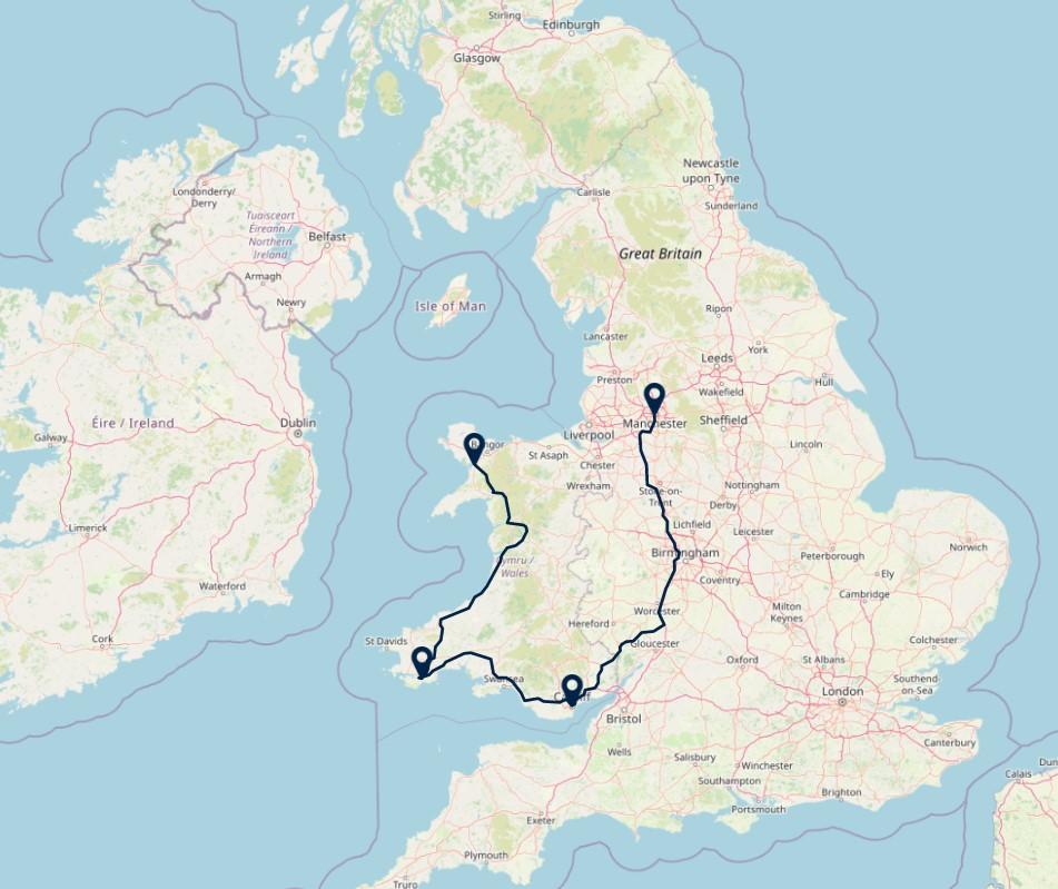 Route: Cardiff - Manchester, 303 km
