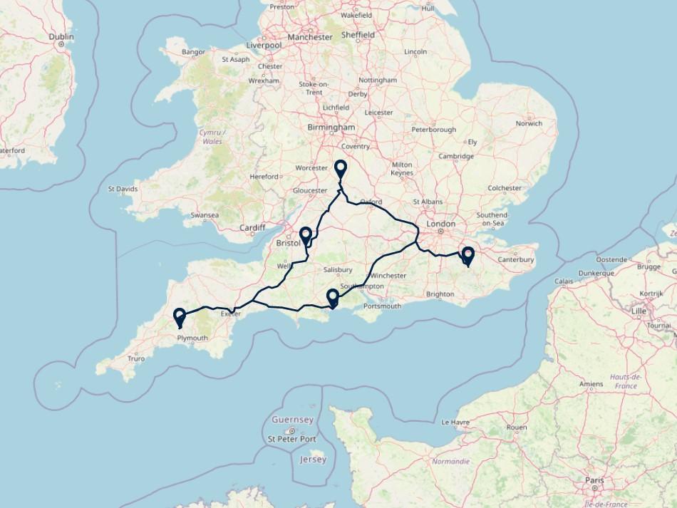 Route: Kent - The Cotswolds, 214 km