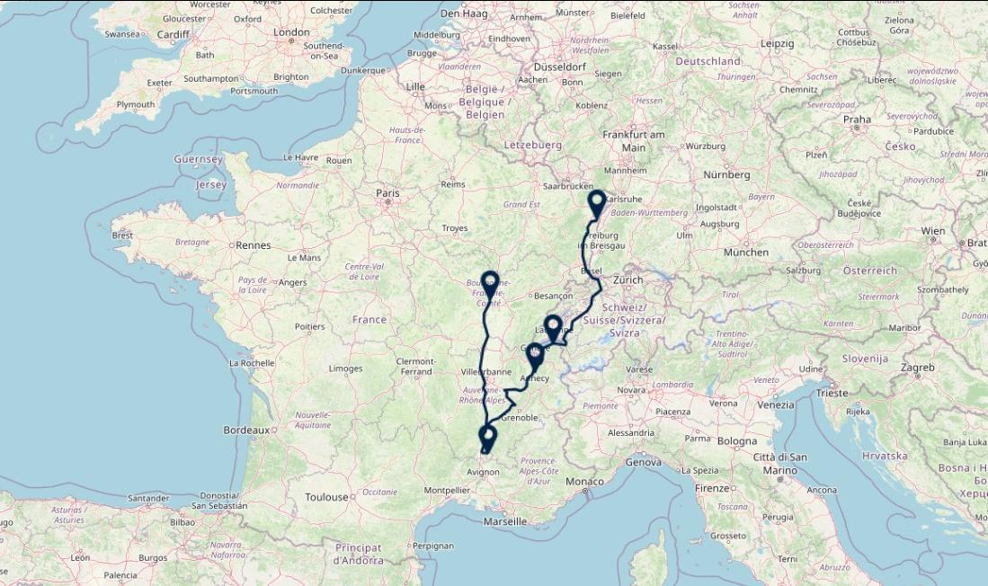 Een onvergetelijke reis begint in Straatsburg, waar de middeleeuwse charme u verwelkomt. Van daaruit reist u naar het verfrissende Evian-les-Bains en ontspant u aan de oevers van het Meer van Genève. Het schilderachtige Annecy wacht met zijn kleurrijke steegjes en romantische boottochten. Vervolgens duikt u in de Provençaalse pracht van Grignan, omringd door wijngaarden en gastronomie. Na een ontdekkingstocht door historische kastelen en wijngaarden, eindigt de reis in Vougeot, waar u de laatste avond doorbrengt te midden van de wijngaarden van de Bourgogne.