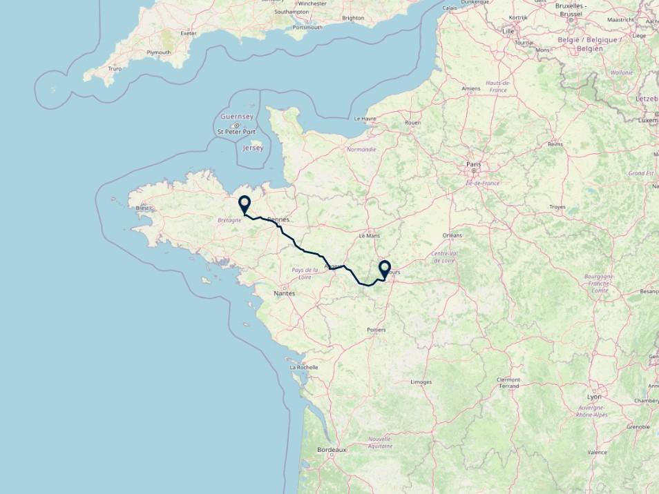 Route: Saint-Launeuc (875 km vanaf Utrecht)