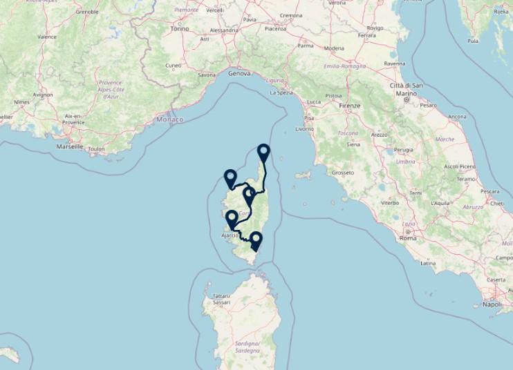 Van ruige berglandschappen tot idyllische baaien, Corsica biedt een verrassende combinatie van ongerepte natuur en mediterrane charme. Uw reis begint in Macinaggio, aan de schilderachtige Cap Corse, voordat u naar Corte reist, de voormalige hoofdstad met een indrukwekkende citadel en het natuurpark van de Restonica-vallei, perfect voor wandelliefhebbers. In Calvi geniet u van sfeervolle straatjes, witte zandstranden en het uitzicht vanaf de vesting. Daarna wacht Ajaccio, de geboortestad van Napoleon, waar u de geschiedenis en levendige markten ontdekt. In Porto-Vecchio verblijft u drie nachten om te ontspannen aan de paradijselijke stranden en het charmante oude centrum. Tot slot keert u terug naar Macinaggio voor een rustige afsluiting van uw avontuur.