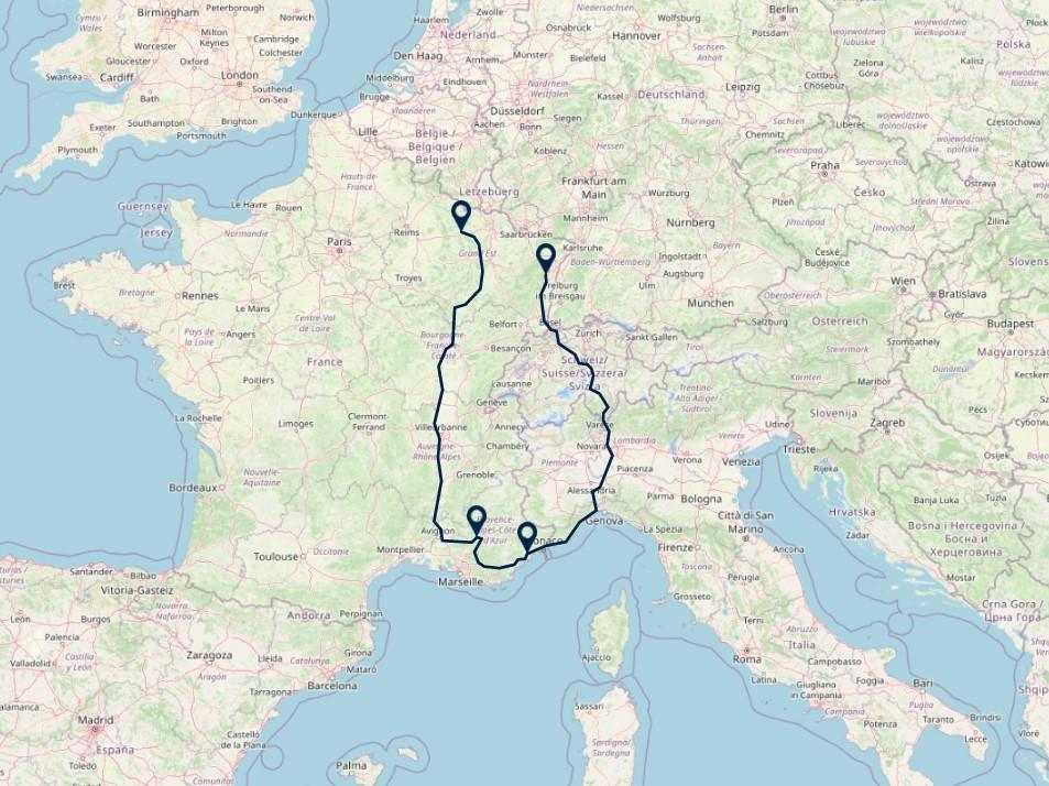 Route: Valbonne - Obernai 800 km