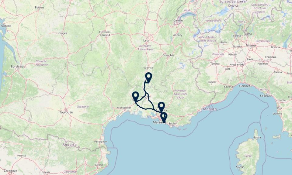 Route: Aix-en-Provence - Grignan, 140 km