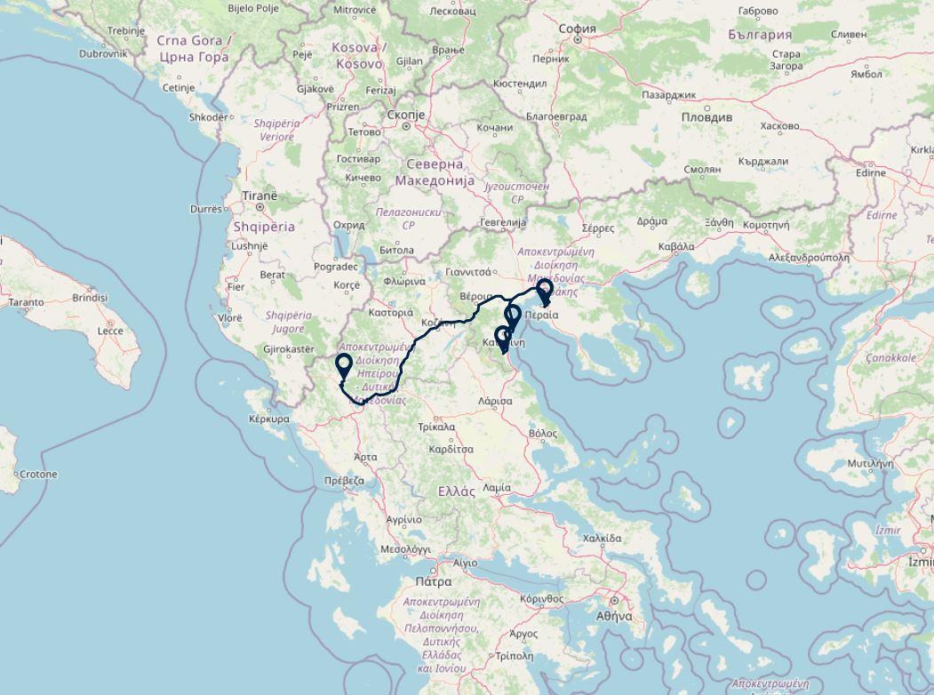 Route: Zagori - Paralia Katerini's, 307 km