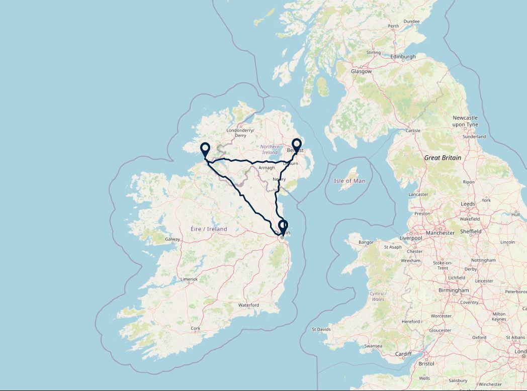 Dag 2: Dublin, Annadale House - Belfast, Titanic Guest Boutique, 166 km