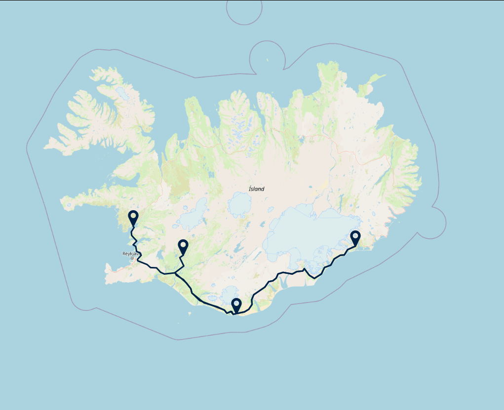 Route: Luchthaven Keflavik - Reykholt, 100 km
