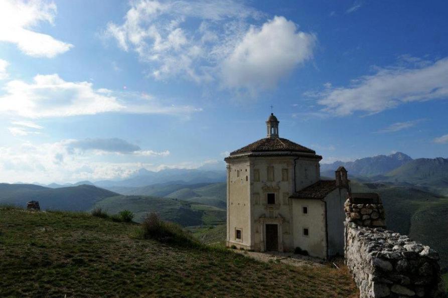 De locatie, op een bergtop van ruim 1450 meter hoogte boven het dorp Calascio, biedt een adembenemend uitzicht over het omringende landschap en de besneeuwde toppen van de Gran Sasso.