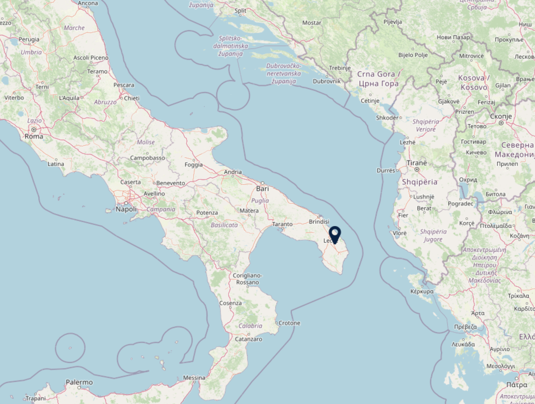 Route: Luchthaven Bari – Sternatia, ca. 150 km