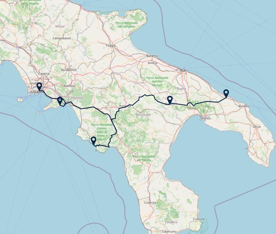 Route: Pisciotta – Matera, 240 km