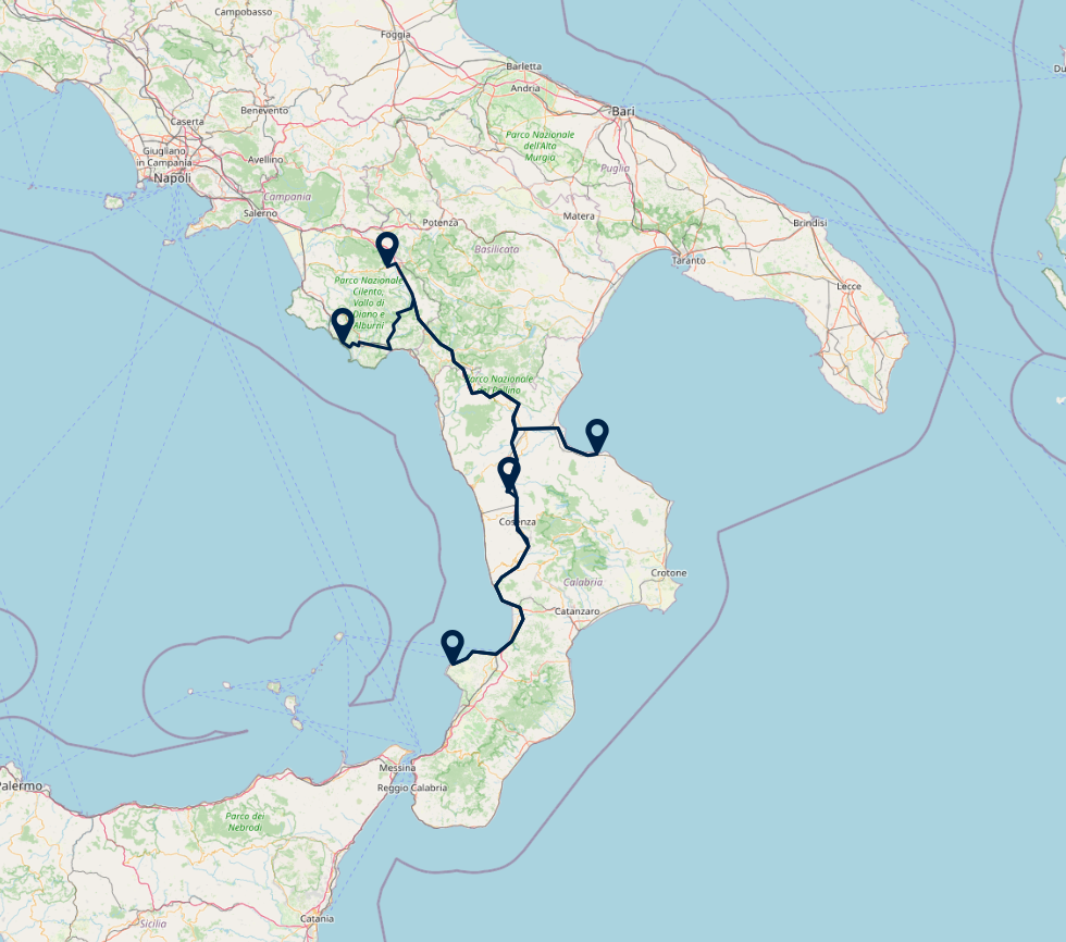 Route: Pisciotta - Montalto Uffugo, 210 km