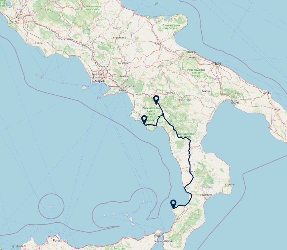 Route: Pisciotta - Tropea, 340 km