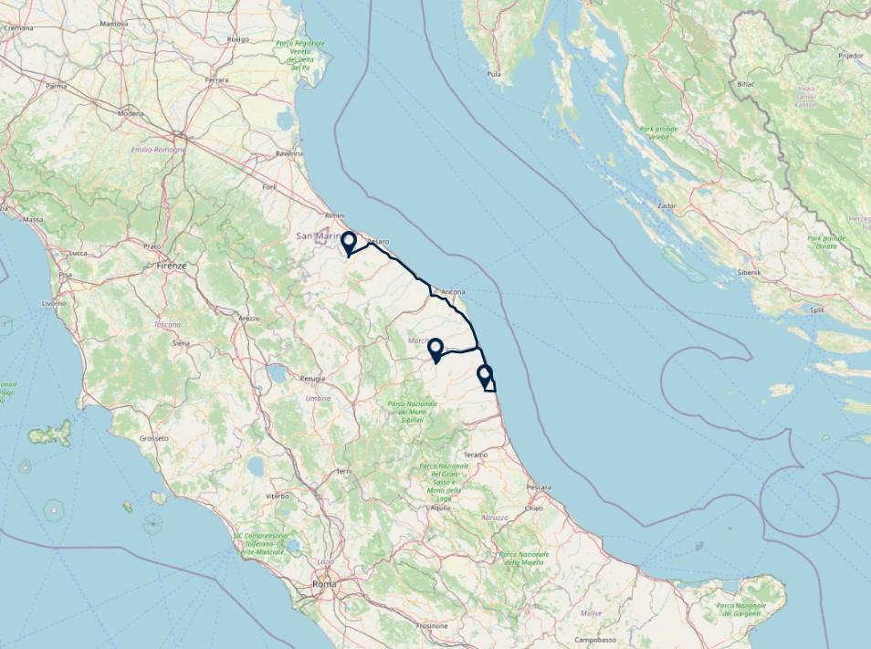 Route: Montecalvo – Urbisaglia, 160km
