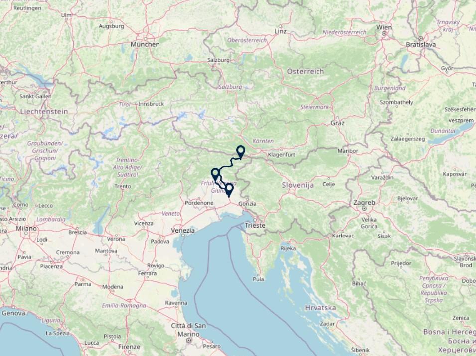 Route: Aankomst in Italië - Ragogna, 1223 km (vanuit Utrecht)