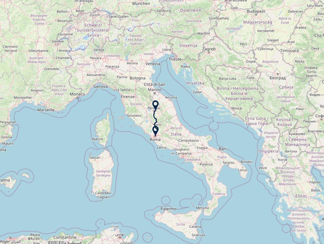 Route: Rome - Ripa, 150 km