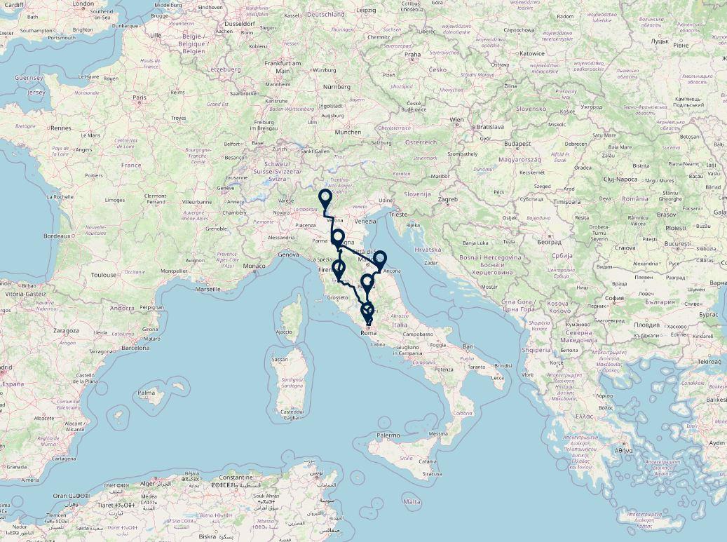 Deze heerlijke reis volgt de route van de beroemde klassieke autorally 'Mille Miglia',. Wij hebben op elke plek een extra nachtje toegevoegd, zodat u ook kunt genieten van de omgeving. U rijdt over diverse bijzondere wegen, langs steden en door de natuur, van Brescia naar Rome en weer terug.