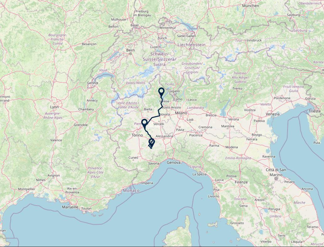 Route: Lago Maggiore - San Sebastiano da Po, 145 km