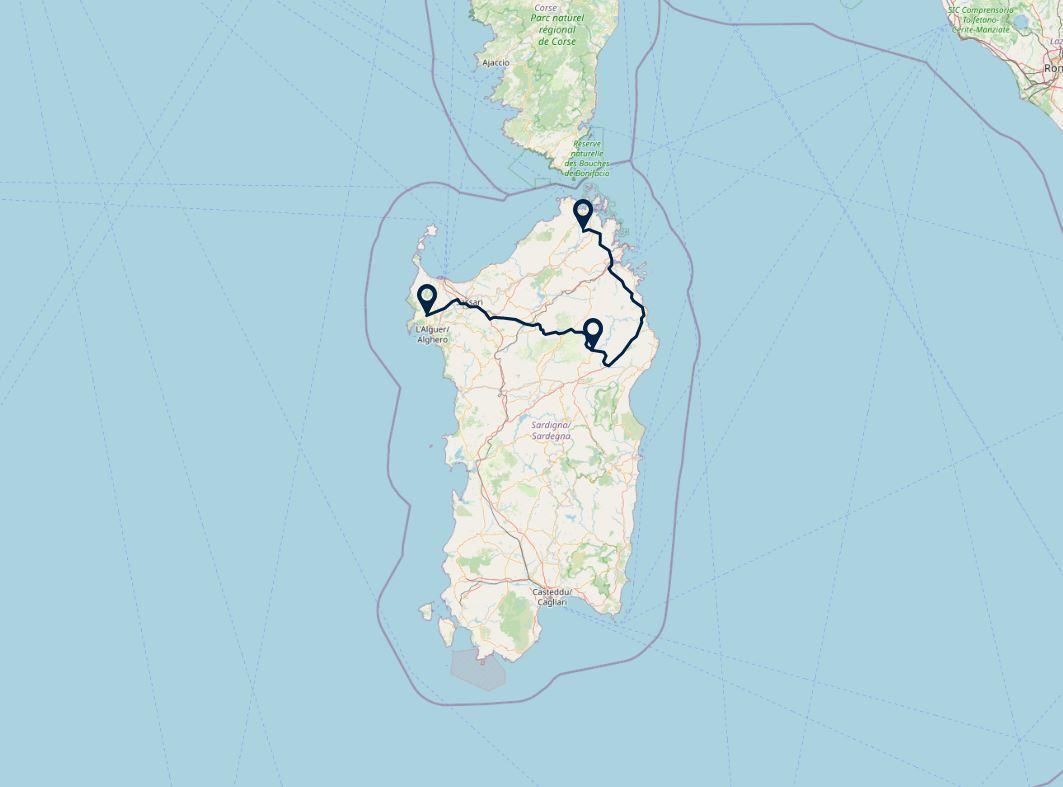 Route: Luchthaven Olbia - Santa Maria la Palma, 130 km