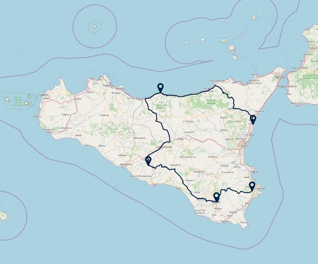 Route: Cefalu - Naro, 140 km