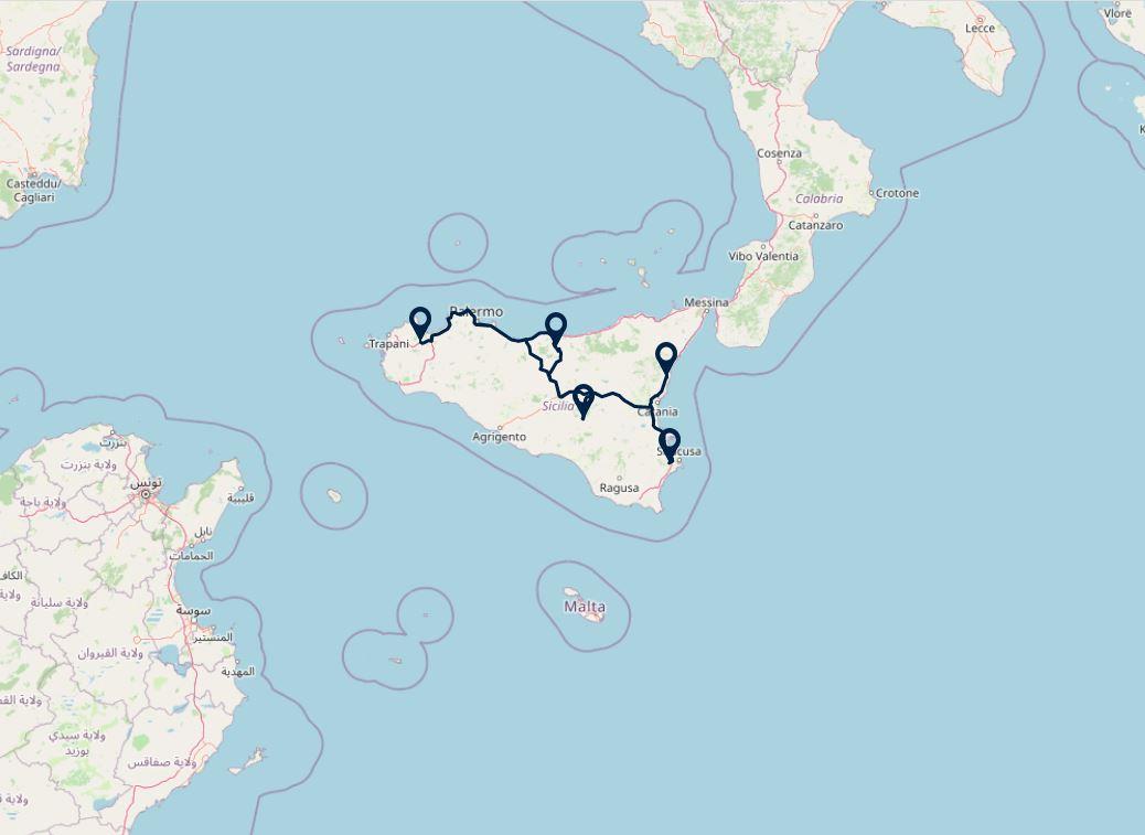 Een prachtige route door zonnig Sicilië! U start in de omgeving van het bijna 3000 jaar oude Siracusa en rijdt u het eiland rond, eindigend op de flanken van de Etna. Onderweg geniet u van een indrukwekkend landschap, barokstadjes, Griek/Romeinse tempelcomplexen en niet te vergeten Palermo, culturele hoofdstad 2018.