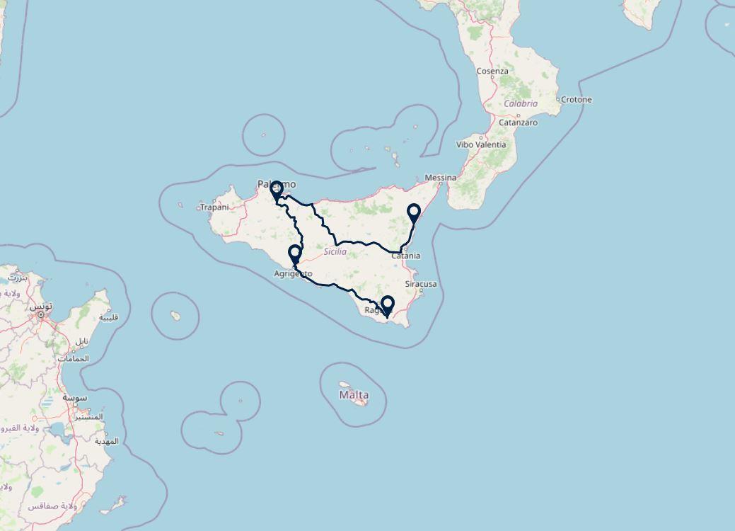 Route: Giarre - San Giuseppe Jato, 255 km