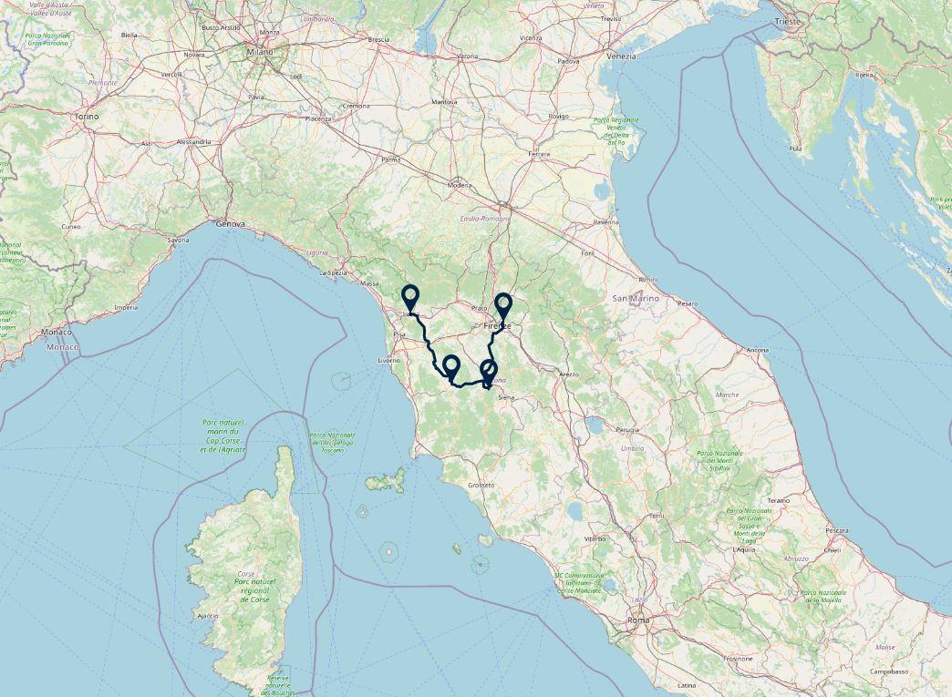 Route: vertrek uit Fiesole, 1346 km (tot Utrecht)