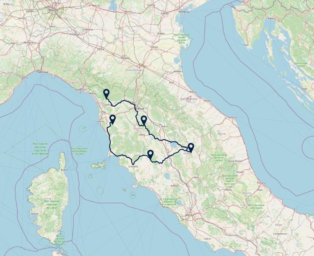 Deze uitdagende en afwisselende route voert u langs het mooiste van Toscane en Umbrië, twee van Italië's meest schilderachtige regio's. U bezoekt diverse UNESCO werelderfgoedlocaties en ontdekt zowel bekende als verborgen parels. Deze reis is ideaal voor zowel nieuwe ontdekkers als terugkerende bezoekers die willen genieten van het rijke landschap, de cultuur, keuken en wijnen van deze gebieden. U verblijft op 5 bijzondere locaties, waarbij elke plek zorgvuldig is gekozen om comfort en authenticiteit te bieden. Of u nu Toscane al kent of Umbrië voor het eerst ervaart, deze reis belicht alle unieke facetten van deze prachtige Italiaanse regio's.