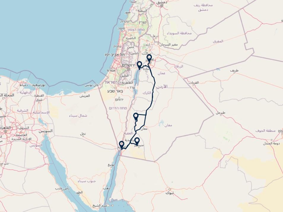Vanuit Amman rijdt u richting het zuiden naar Petra. Onderweg zijn er genoeg mooie plekken om te stoppen. Aanraders om te stoppen zijn Madaba en Mount Nebo. Madaba is de stad van de mozaïeken en het culturele centrum voor de Byzantijnse en Umayyad-mozaïeken. Aan de oevers van de Dode Zee ligt Mount Nebo, de plek waar volgens overlevering Mozes het Beloofde Land heeft gezien. Stop bij Mount Nebo voor het prachtige uitzicht. Op een heldere dag kunt u zelfs de torens van Jeruzalem zien in de skyline. Hierna rijdt u door naar de magische stad Petra waar u 2 nachten verblijft.