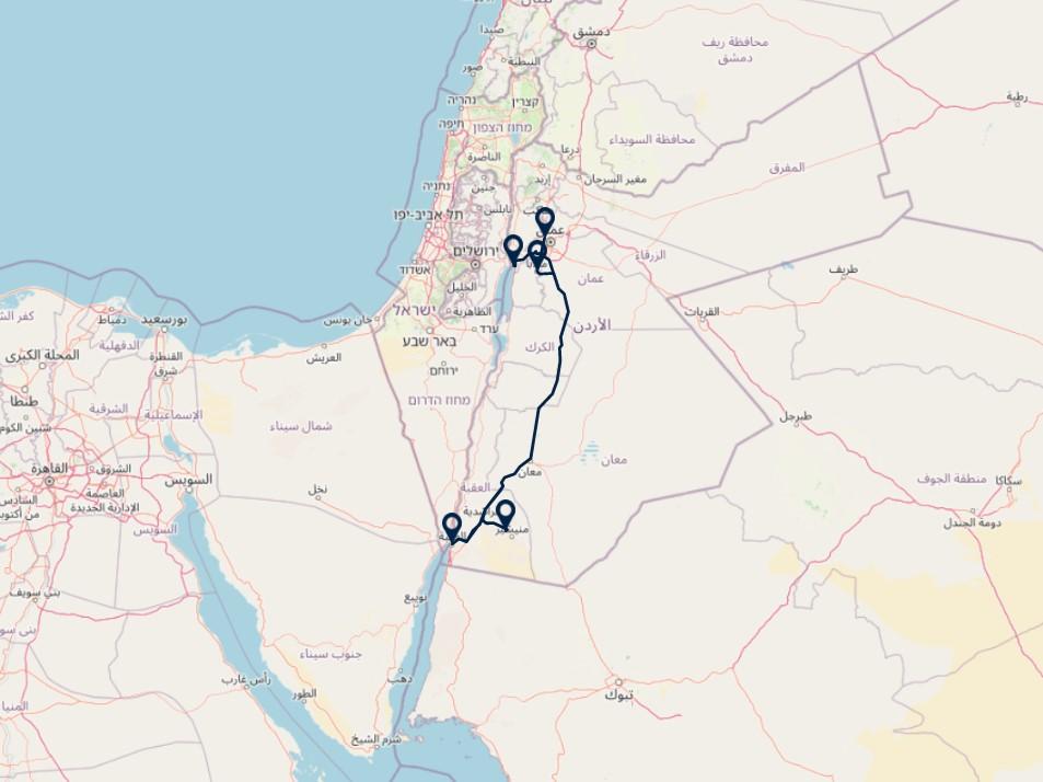 U start deze reis in de hoofdstad Amman, gelegen op korte afstand van Jerash en Umm Qais. Vanuit Amman rijdt u zuidwaarts naar Mount Nebo, gelegen aan de Dode Zee en Madaba, waar u overnacht. Relax een dagje in de badplaats Aqaba, bezoek de UNESCO stad Petra en overnacht onder de sterren in de imposante Wadi Rum woestijn, waarna u de reis eindigt in een fijn hotel aan de Dode Zee. Een gevarieerd 8-daags programma in 4 sterren superior accommodaties.