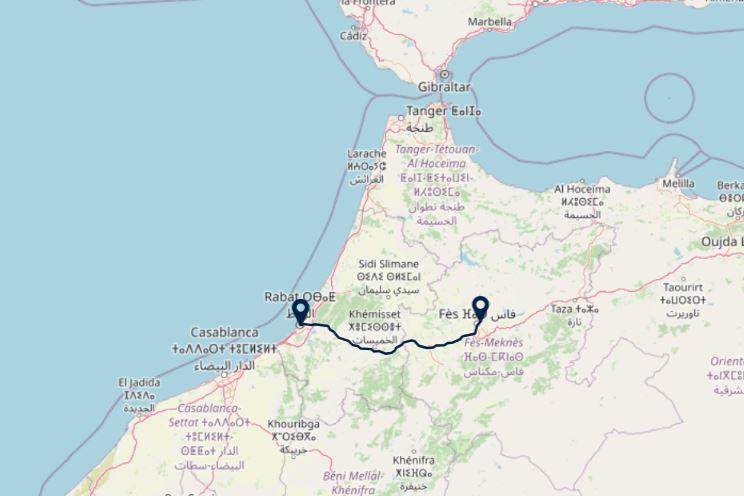 Route: Fes - Rabat (ca. 2,5 uur rijden)