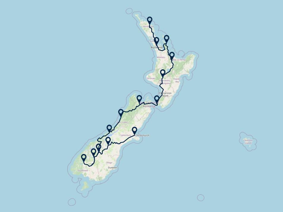 Deze reis is een voorbeeld van een reisroute van een rondreis Nieuw-Zeeland. Wilt u de reis aanpassen, inkorten of verlengen? Alles is mogelijk! U kunt uw wensen kenbaar maken via het offerteformulier. Wij hebben uitgebreide reiservaring in Nieuw-Zeeland en stellen graag, in samenspraak met u, de Nieuw-Zeeland rondreis samen die volledig aansluit bij uw wensen.