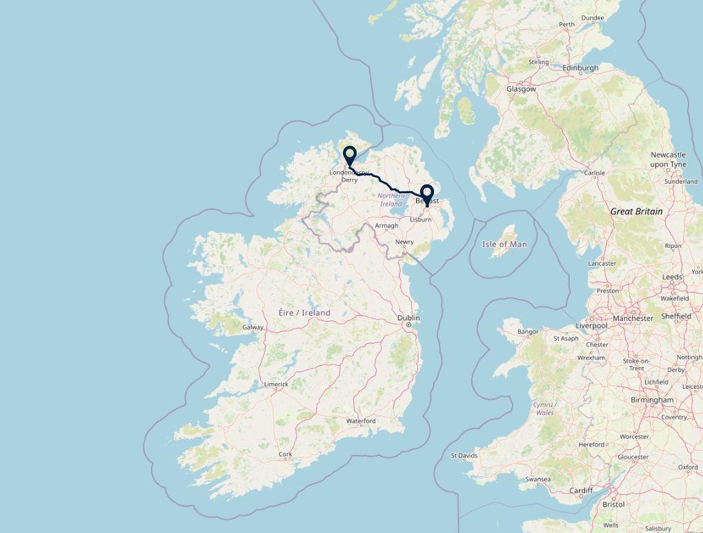 Ontdek de twee belangrijkste steden van Noord-Ierland per trein tijdens deze mooie reis.