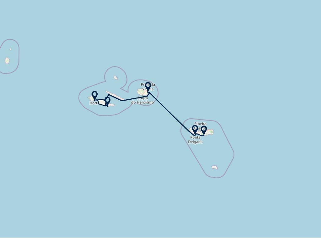 Route: Praia da Vitoria (Terceira) - Sao Roque do Pico (Pico)