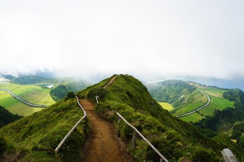 Vanaf het uitkijkpunt Serra do Cume (500 m) heeft u een adembenemend uitzicht over groene weiden en akkers, gescheiden door de zwarte muurtjes van vulkanische rotsblokken en heggen met hortensia’s. Daardoor is een landschap ontstaan met een imposant blokkenpatroon van ontelbare tinten groen.