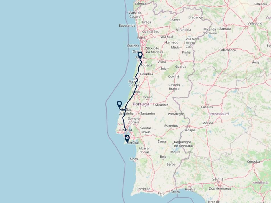 U begint de reis in het pittoreske vissersplaatsje Sesimbra, gelegen ten zuiden van Lissabon. Aansluitend gaat de reis in noordelijke richting, waar u verblijft in Peniche, één van de meest schilderachtige vissersplaatsjes van Midden-Portugal met prachtige zandstranden. U eindigt de reis in bijzonder Aveiro, het Portugese Venetië.