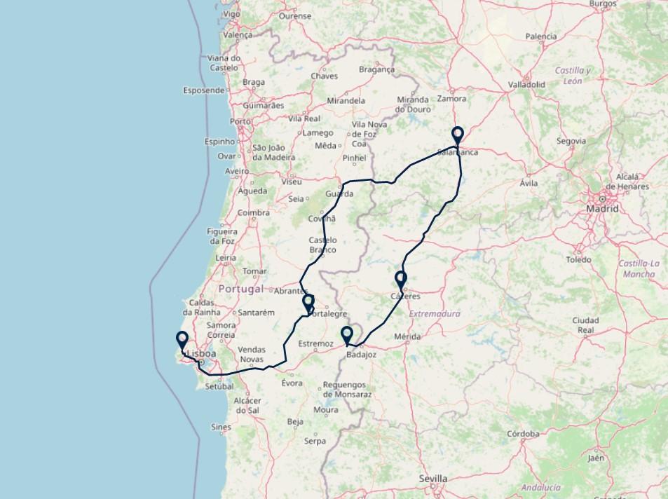 Route: Alter do Chao - Salamanca, 345 km