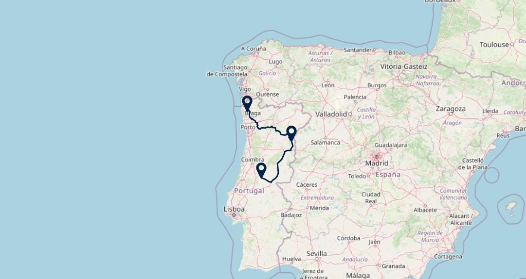 Een langere rit van ongeveer 288 kilometer brengt je naar Vitorino de Donas. Onderweg komt u mogelijk langs charmante dorpjes, oude kerken en traditionele marktpleinen. Misschien wilt u even stoppen om te genieten van een lokaal gerecht in een van de gezellige restaurants langs de route, of om foto's te maken van het schilderachtige landschap. Naarmate u dichter bij Vitorino de Donas komt, wordt het landschap groener en weelderiger, met weelderige bossen en kronkelende rivieren die door de valleien stromen. Uiteindelijk bereikt u Vitorino de Donas, een charmant dorpje dat bekend staat om zijn prachtige historische landhuizen en paleizen. U kunt ook de route door de Douro vallei nemen. De wijnstokken groeien in de vallei en biedt een prachtig uitzicht. Niet voor niets dat dit gebied ook Unesco erfgoed is geworden.