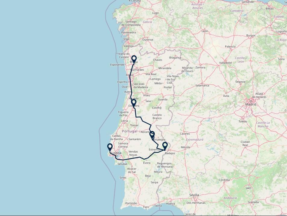 Route: Braga - Coimbra,175 km