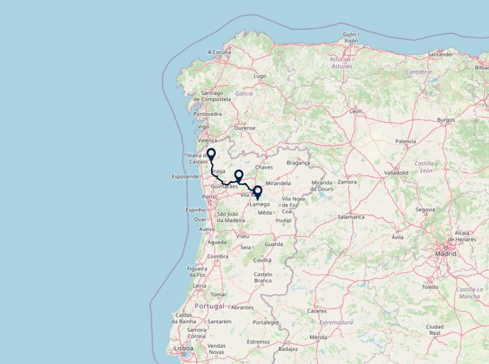 Route: Luchthaven Porto - Ponte de Lima, 70 km